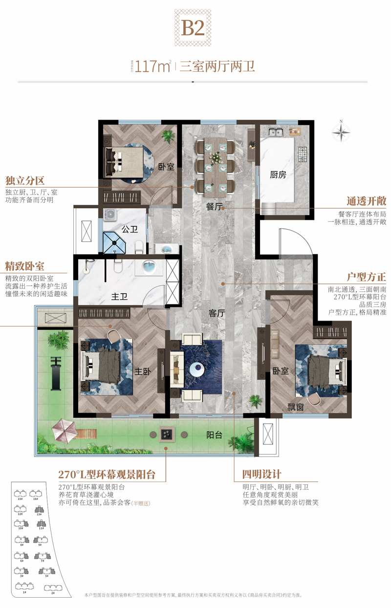 項(xiàng)目共計(jì)規(guī)劃14棟樓,都是一梯兩戶7-8層電梯洋房,超寬樓間距??傆玫孛娣e30189㎡,地上45360㎡,規(guī)劃430戶,建筑密度為:25.01%,綠地率為:30.21%,車位配比1:1,容積率1.49。