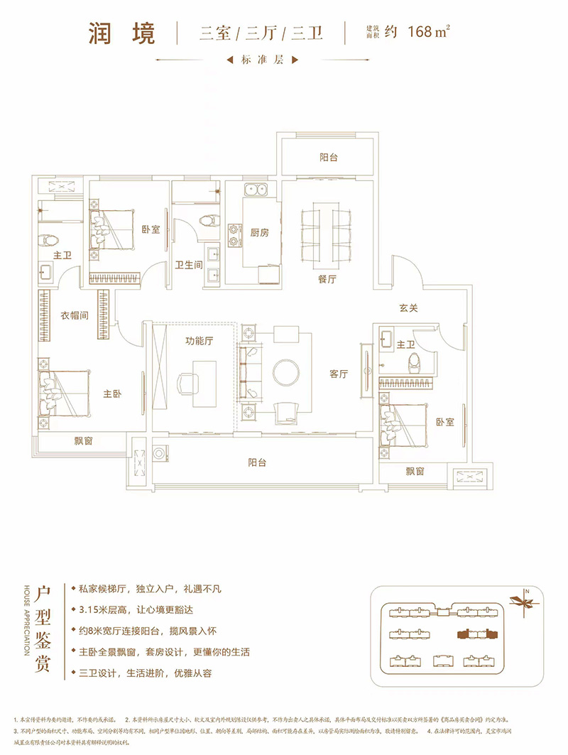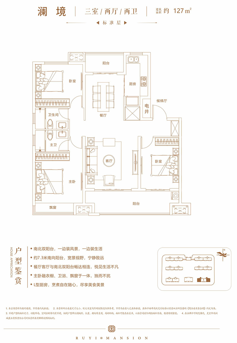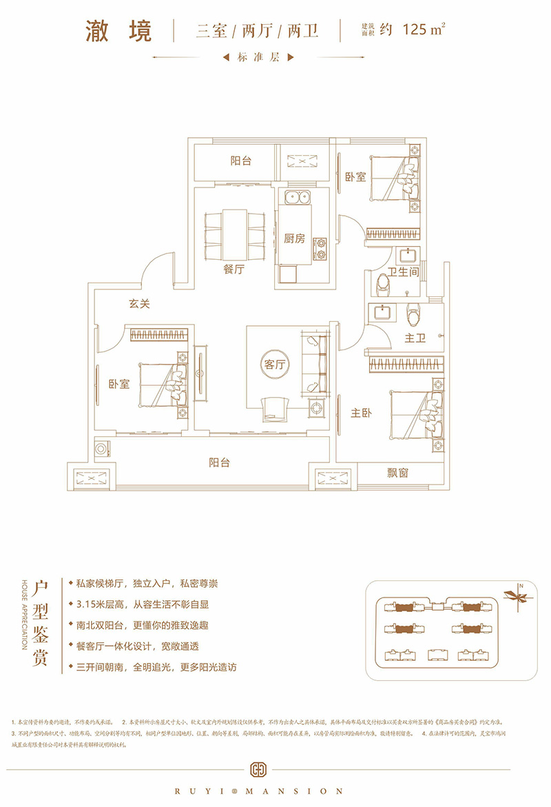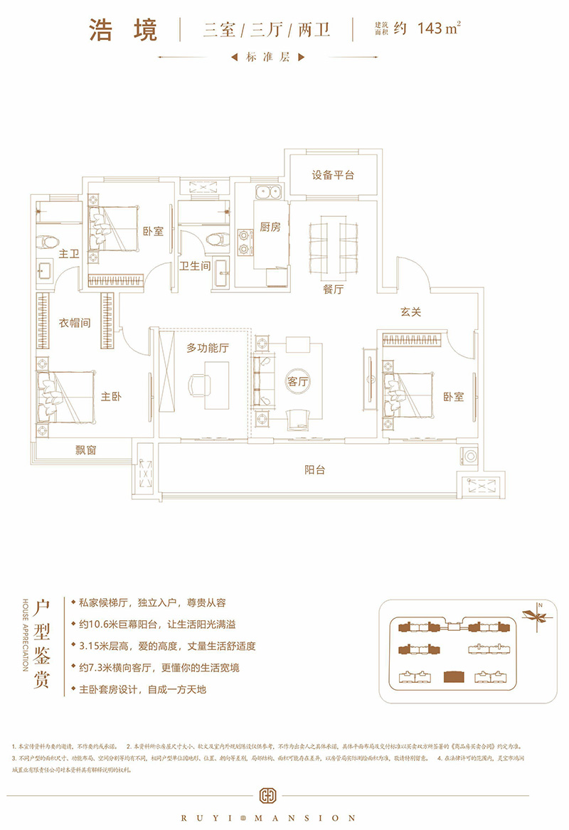 嵩基如意府項目設(shè)計理念是通過深入挖掘靈寶的歷史文化背景,以地域情懷和人文訴求作為設(shè)計根本,通過對靈寶現(xiàn)有城市文化的解析,打造一個屬于靈寶全新的高端人居社區(qū)。建筑風格上采用現(xiàn)代中式的建筑風格,項目外立面以米色真石漆與深棕色經(jīng)典搭配,線條簡潔硬朗,屋檐舒展、比例協(xié)調(diào),整體風格端莊大氣。戶型設(shè)計方面更是體現(xiàn)以人為本的原則,重點突出產(chǎn)品性價比。戶戶南北通透,保證每一戶的通風效果;其次每戶均設(shè)計為私家侯梯廳,而且每戶均贈送超大陽臺,贈送面積較多,使每一位購房客戶均能享受到超高的性價比。景觀設(shè)計方面更注重細節(jié),中央景觀區(qū)采用下沉式庭院景觀,使項目整個景觀高低錯落有致,樓與樓之間更是設(shè)計不同風格的花園,使入住嵩基如意府的每一位業(yè)主真正體驗到一步一景、步步觀景的效果。