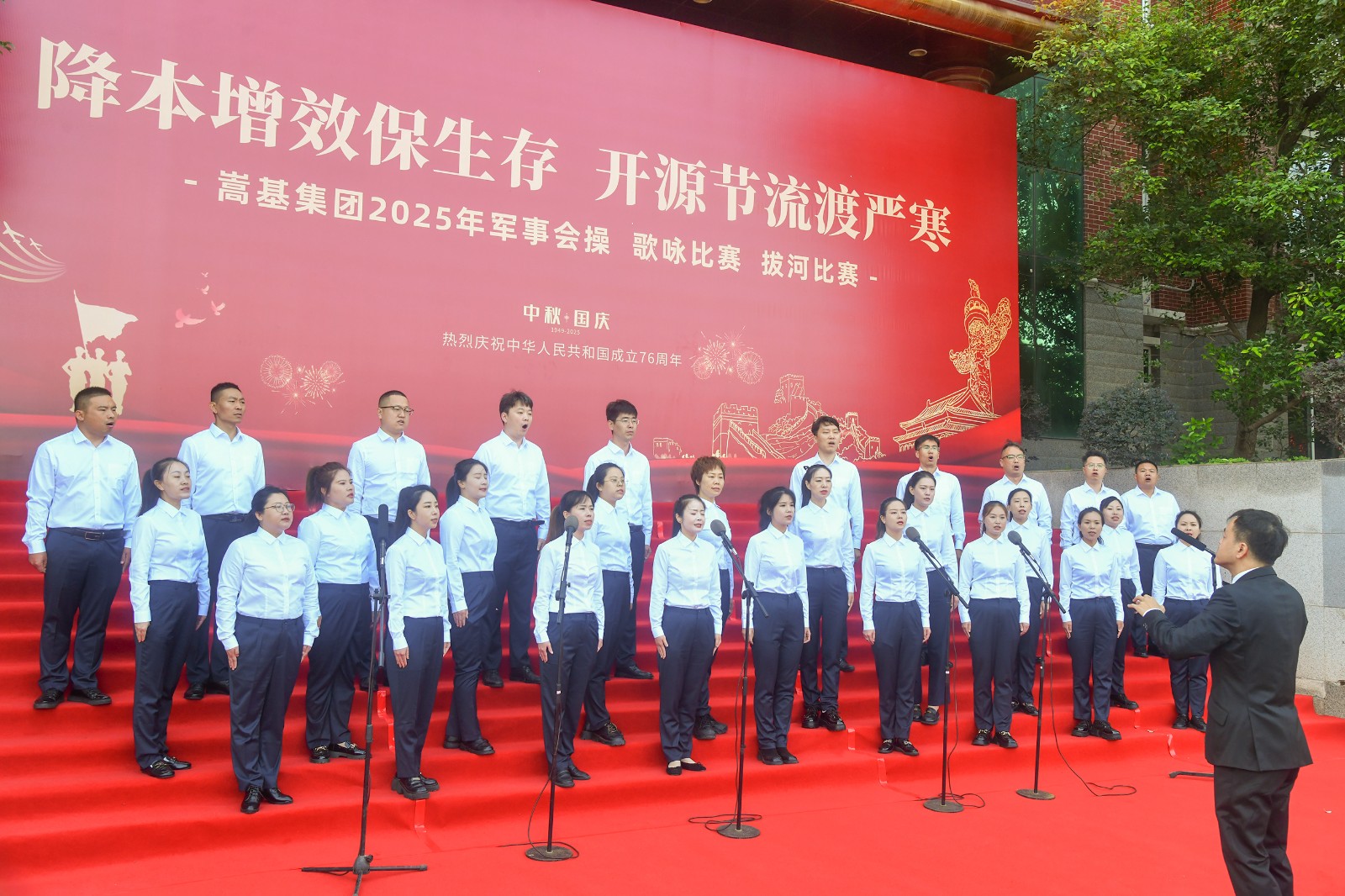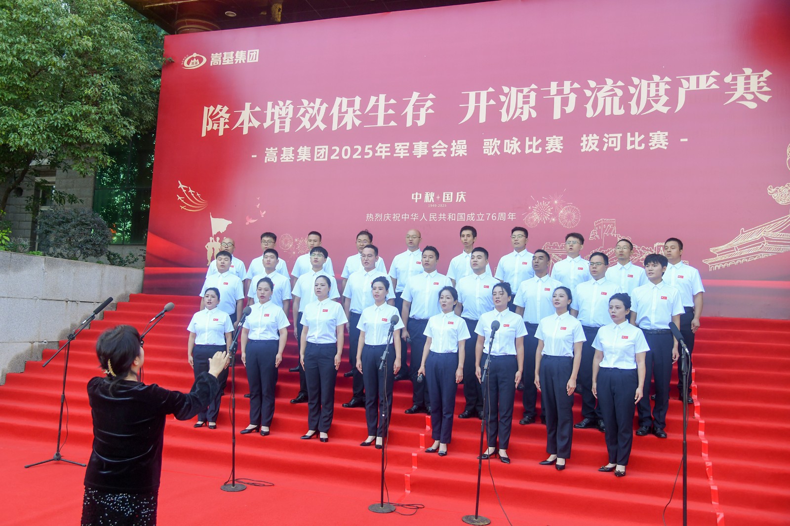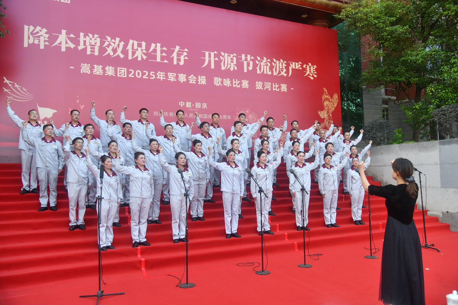 本次活動依次進行了歌詠比賽、軍事會操和拔河比賽三項賽事。歌詠比賽中,各代表隊精神飽滿,《保衛(wèi)黃河》《強軍有我》《愛永在》等經(jīng)典曲目接連唱響,歌聲嘹亮,情感真摯,或氣勢磅礴,或深情婉轉(zhuǎn),充分表達了嵩基員工對祖國的深厚情感與美好祝福?,F(xiàn)場氣氛熱烈,掌聲此起彼伏。經(jīng)專業(yè)評委現(xiàn)場打分,嵩基水泥代表隊榮獲冠軍,中岳電力代表隊獲得亞軍,嵩基新材代表隊獲得季軍。