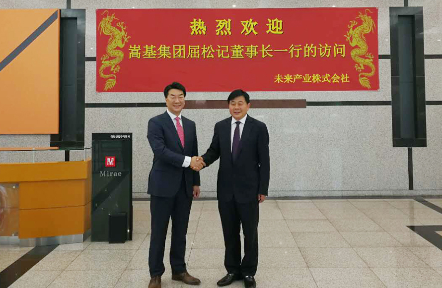 7月8日下午,嵩基集團(tuán)董事長(zhǎng)屈松記一行到韓國(guó)未來(lái)產(chǎn)業(yè)株式會(huì)社與該社團(tuán)董事長(zhǎng)李權(quán)杰在韓國(guó)天安會(huì)談。