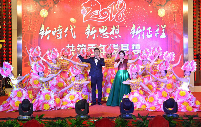 晚會在開場舞《萬喜中國喜》歡樂祥和的音樂中晚會拉開了序幕。總經(jīng)理李天義進(jìn)行了熱情洋溢的新年賀詞,并攜同公司領(lǐng)導(dǎo)送上了節(jié)日問候和新年祝福。本次晚會集現(xiàn)代氣息、傳統(tǒng)風(fēng)格于一身,形式豐富,歌曲、戲曲、舞蹈、相聲等異彩紛呈,不拘一格,特別是中場互動的選號搖獎和支付寶搶紅包環(huán)節(jié),更是把晚會推向了高潮。經(jīng)過搖獎和兩輪搶紅包活動,幸運(yùn)員工在欣賞精彩節(jié)目的同時,獲得意外驚喜,精彩紛呈的節(jié)目輪番上演,演員們的出色表演博得了臺下觀眾的陣陣掌聲。